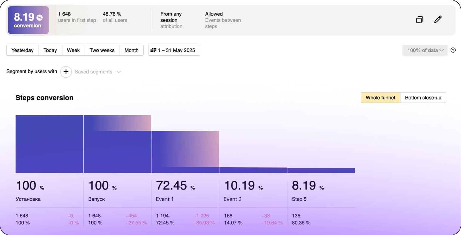 Only custom events, or the ones where you set the name and send them via the SDK or Post API. If an event has built-in attributes, it counts no matter how many attributes there are or which nesting level they’re at. Basic events like installations, deeplink opens, session starts, revenue and ecommerce events, crashes, errors, and push notifications don’t count against the limit. Attributes sent by users don’t count either.