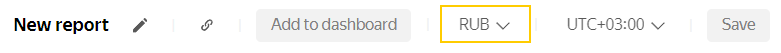 By default, all financial indicators are displayed in rubles. To change the currency of your report, use the drop-down menu at the top of the screen: