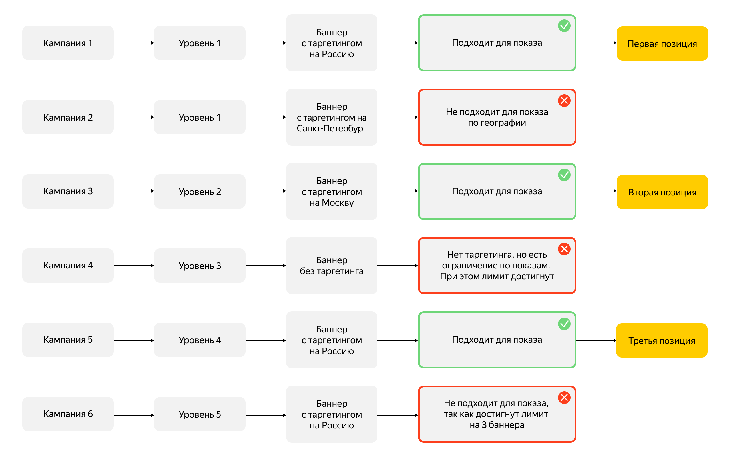 Если Adfox не сможет подобрать слайд на определенную позицию (например, закончилась рекламная кампания или нет активных баннеров), то на ней будет показан слайд с более низким приоритетом. -