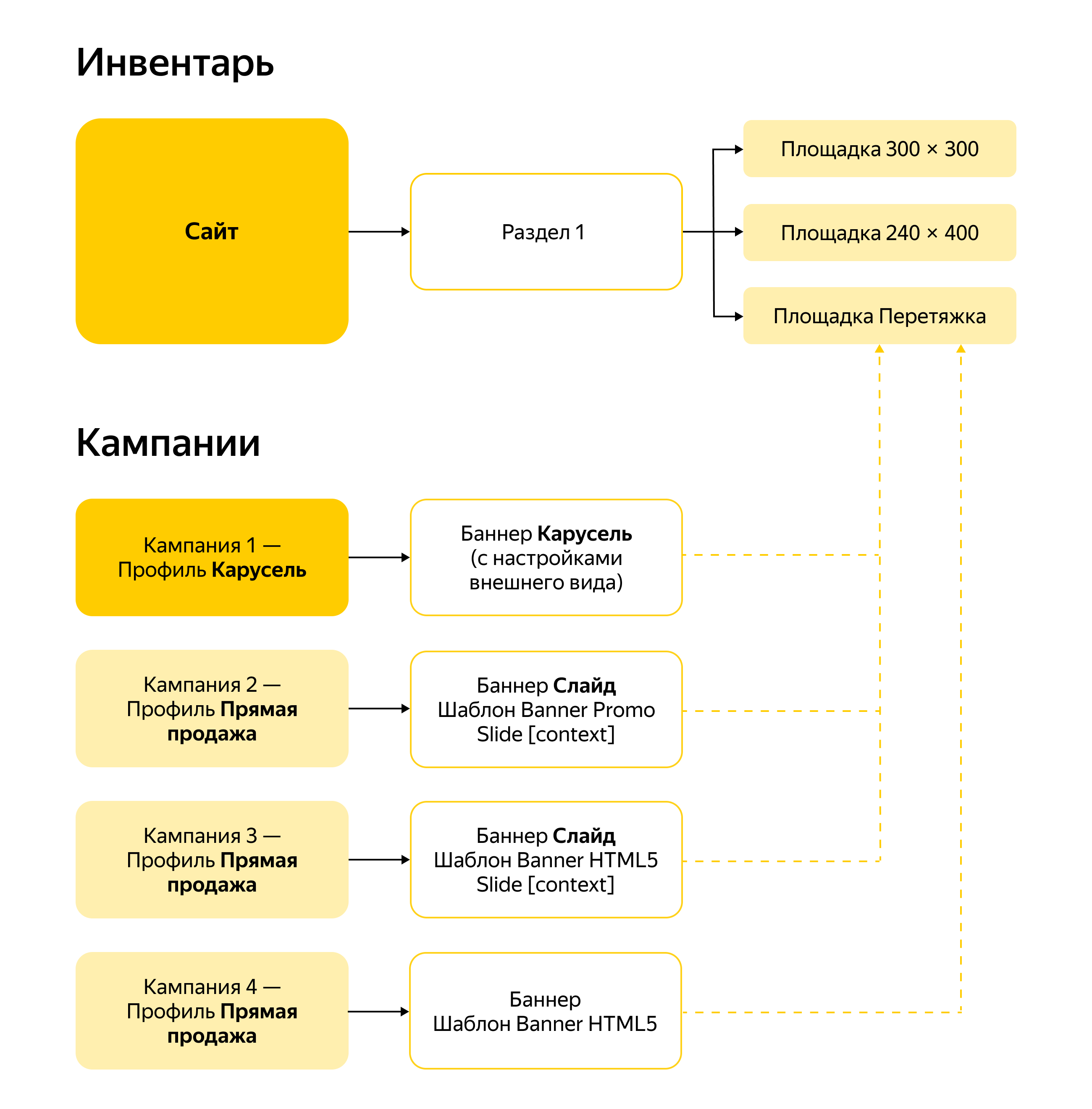 - дополнительные кампании с профилем Прямая продажа и специальными шаблонами баннеров.
